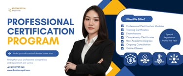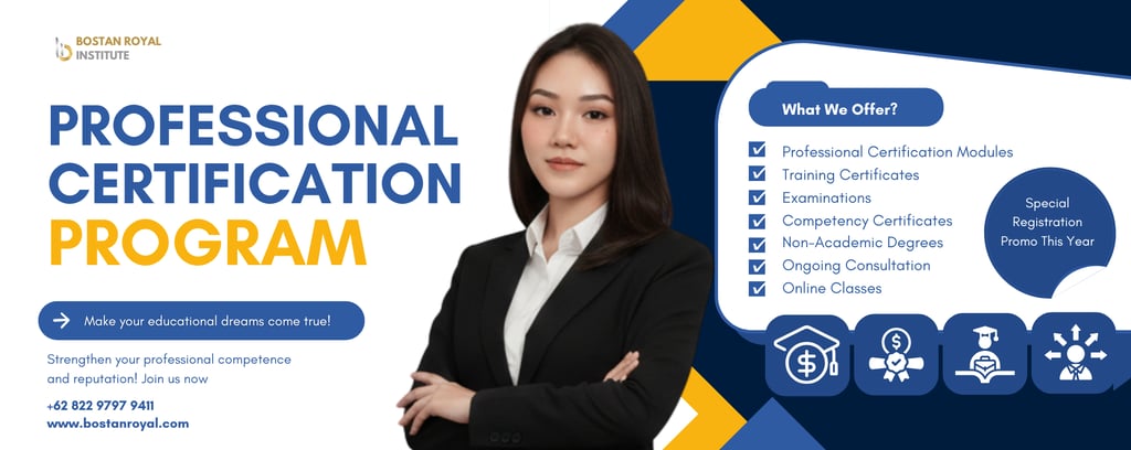 Pusat pelatihan dan pengembangan profesional dengan program yang relevan dan praktis. Tingkatkan kredibilitas Anda bersama Bostan Royal Institute.